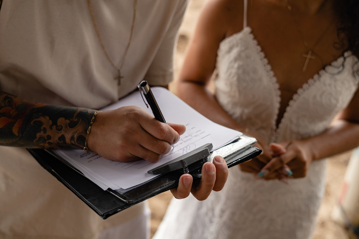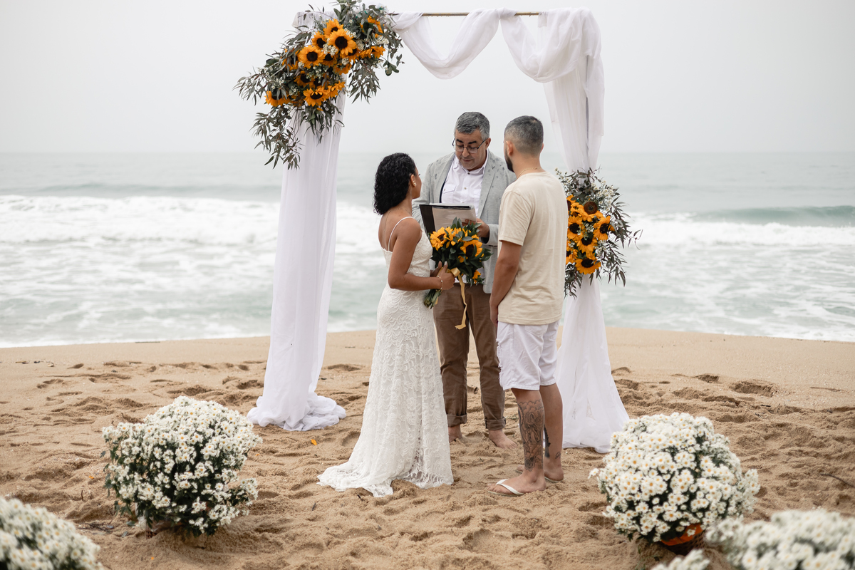 Chego o grande dia! E foi intenso, casar na praia tem o risco de vim uma chuvinha não planejada, porem, mesmo com chuva foi lindo!